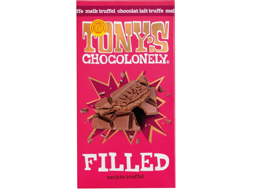 Tony’s Chocolonely - mléčná čokoláda s náplní z čokoládových lanýžů, 127 gramů