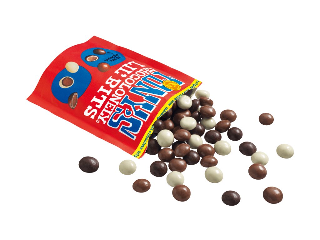 Směs čokoládových kousků obalených v mléčné, bílé a hořké čokoládě. Obsah kakaa nejméně 51% hořká čokoláda, 32% mléčná čokoláda a 28% bílá čokoláda.